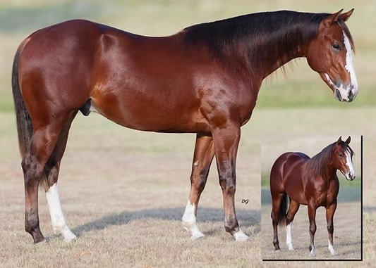 We were able to purchase He Drinks Whiskey from the Frank Perkins program in Texas in 2016. This 2014 bay roan son of Paddys Irish Whiskey out of a daughter of Mr Sun O Lena is everything we could ask for in a stud. His foals are beautiful and stylish. Carries one gene for GBED. Pedigree